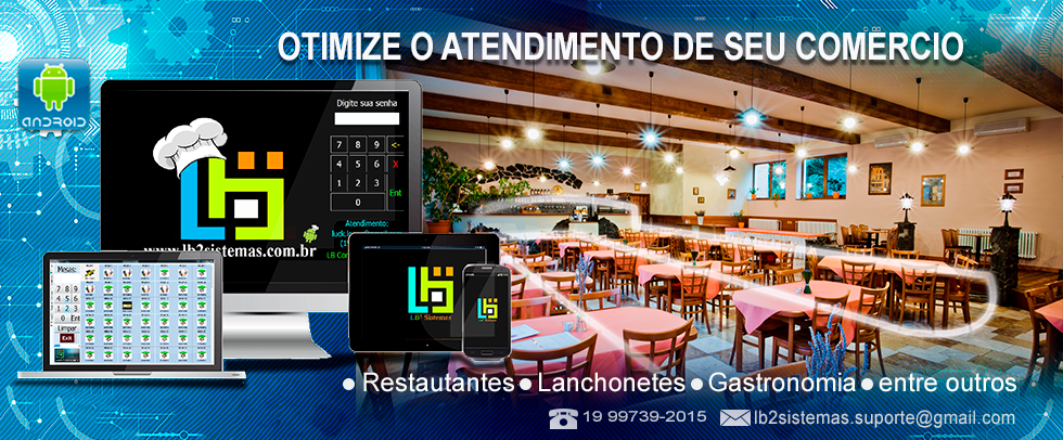 Sistema para restaurantes, bares e casas noturnas, com o LB Commerce, o atendimento é realizado via celulares e tablets ou terminais touch screens que facilitam o controle do registro de todo consumo de seu estabelecimento. Esse incrível software possui duas modalidades de atendimento (Comandas nas mesas ou comandas individuais, preparado para utilização em qualquer tipo de estabelecimento gastronômico, e casas noturnas.